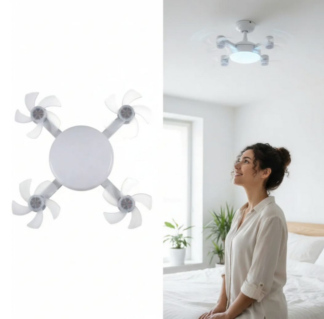 Un ventilador de techo con luz LED ajustable es una luminaria que combina ventilación y luz en una sola unidad montada en el techo. Ofrece corriente de aire para refrescar el ambiente y una fuente de iluminación LED que puedes ajustar en color o intensidad para adaptarla a diferentes situaciones del día o del espacio.
